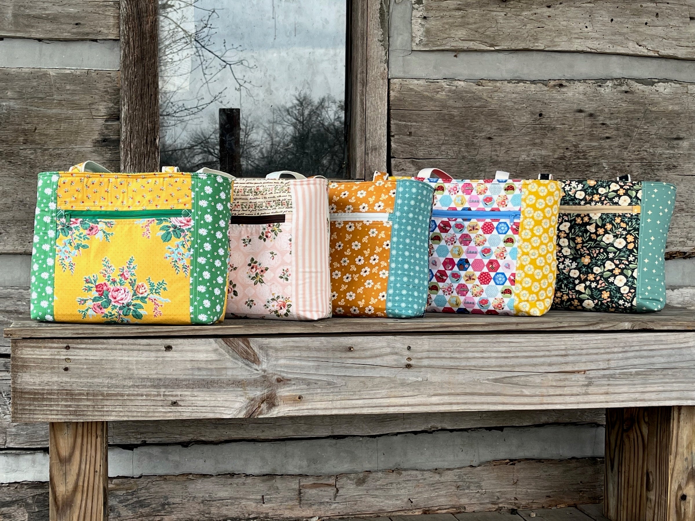 Included in this kit is a journal cover, eyeglass case, pen pouch, and tissue holder... all in coordinating fabrics to perfectly match your bag!